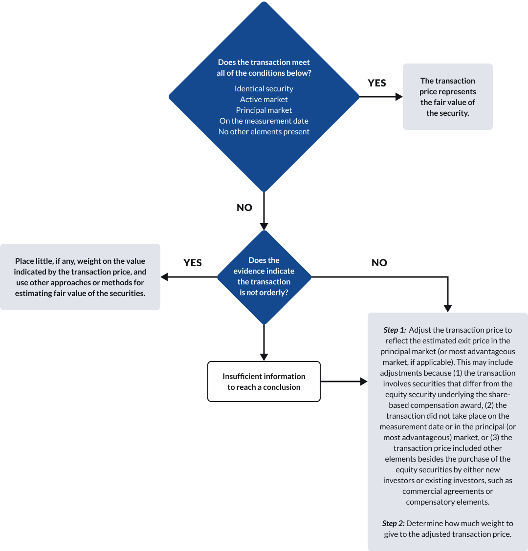 Specifically, the working paper provides a draft framework for incorporating these transactions in fair value. As noted above, the below framework is subject to change and does not constitute a recommendation from AICPA today: