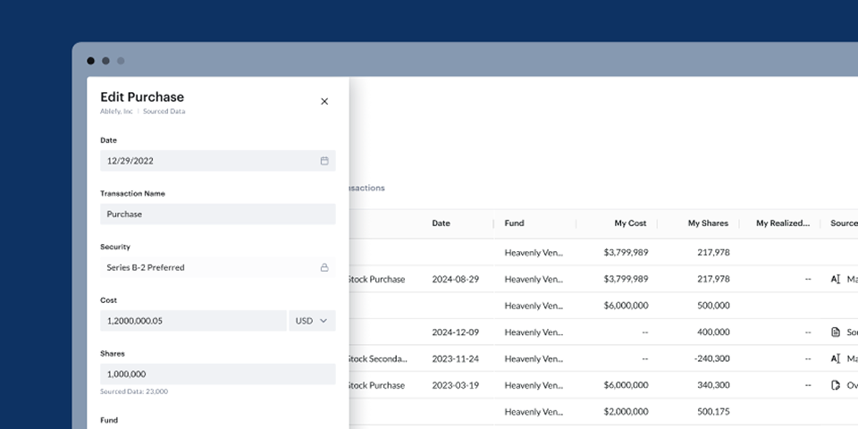 Take advantage of enhanced portfolio and company pages where sourced data and firm inputs coexist within a single workspace. This integration provides comprehensive portfolio visibility while maintaining data integrity and auditability.